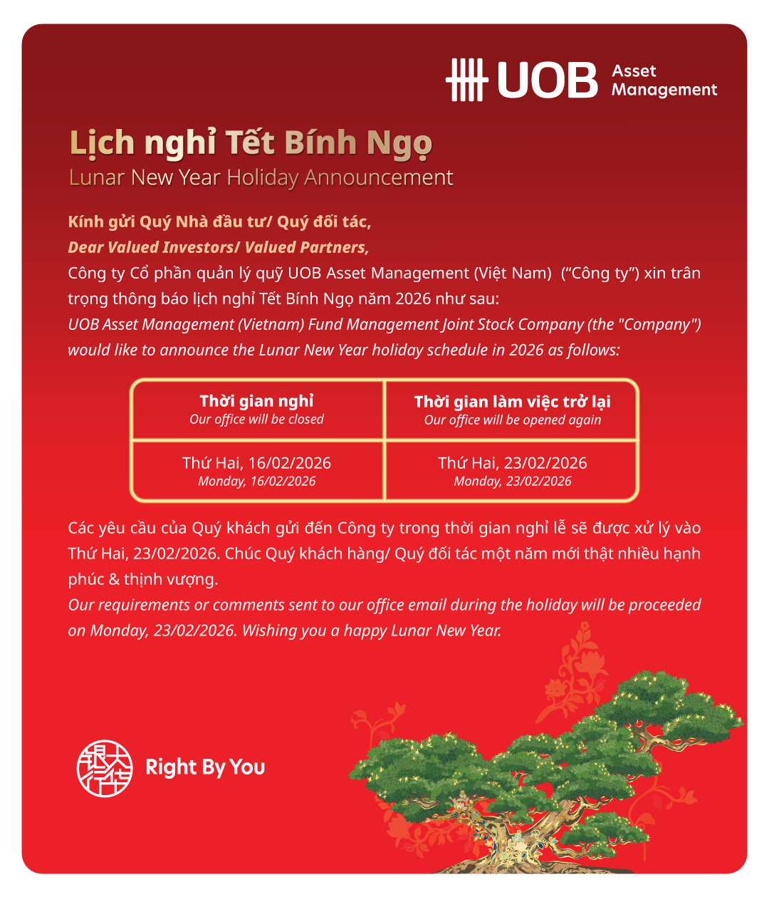 Công ty cổ phần quản lý quỹ UOB Asset Management (Việt Nam) (“Công ty”) xin trân trọng thông báo lịch nghỉ Lễ Quốc khánh 02/09 năm 2025 như sau: UOB Asset Management (Vietnam) Fund Management Joint Stock Company would like to announce Vietnam’s National Holiday 2025 as below: